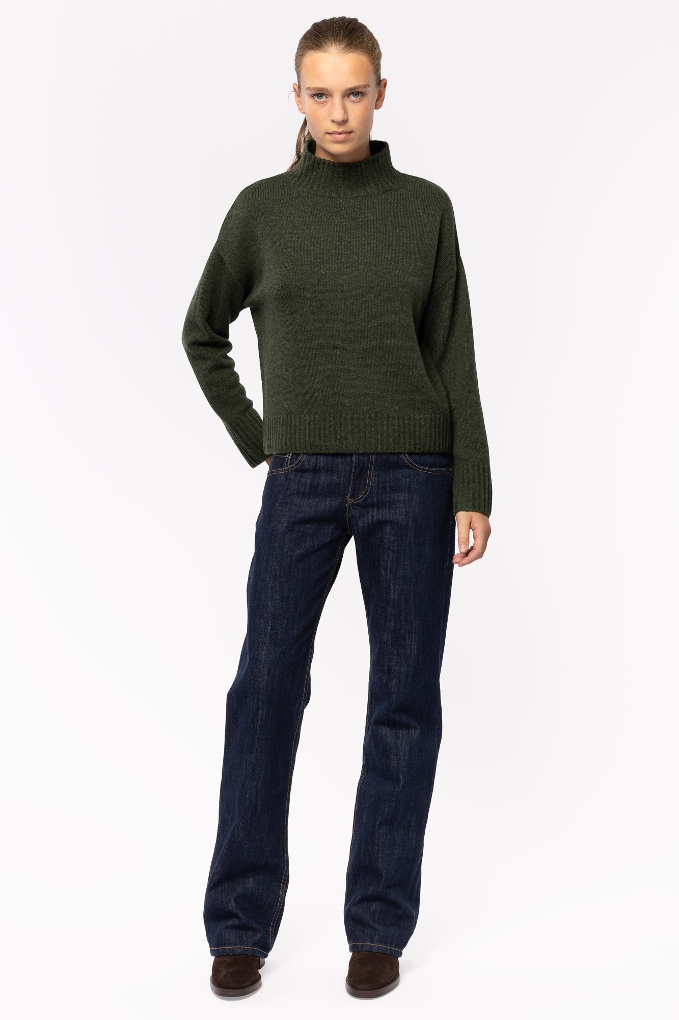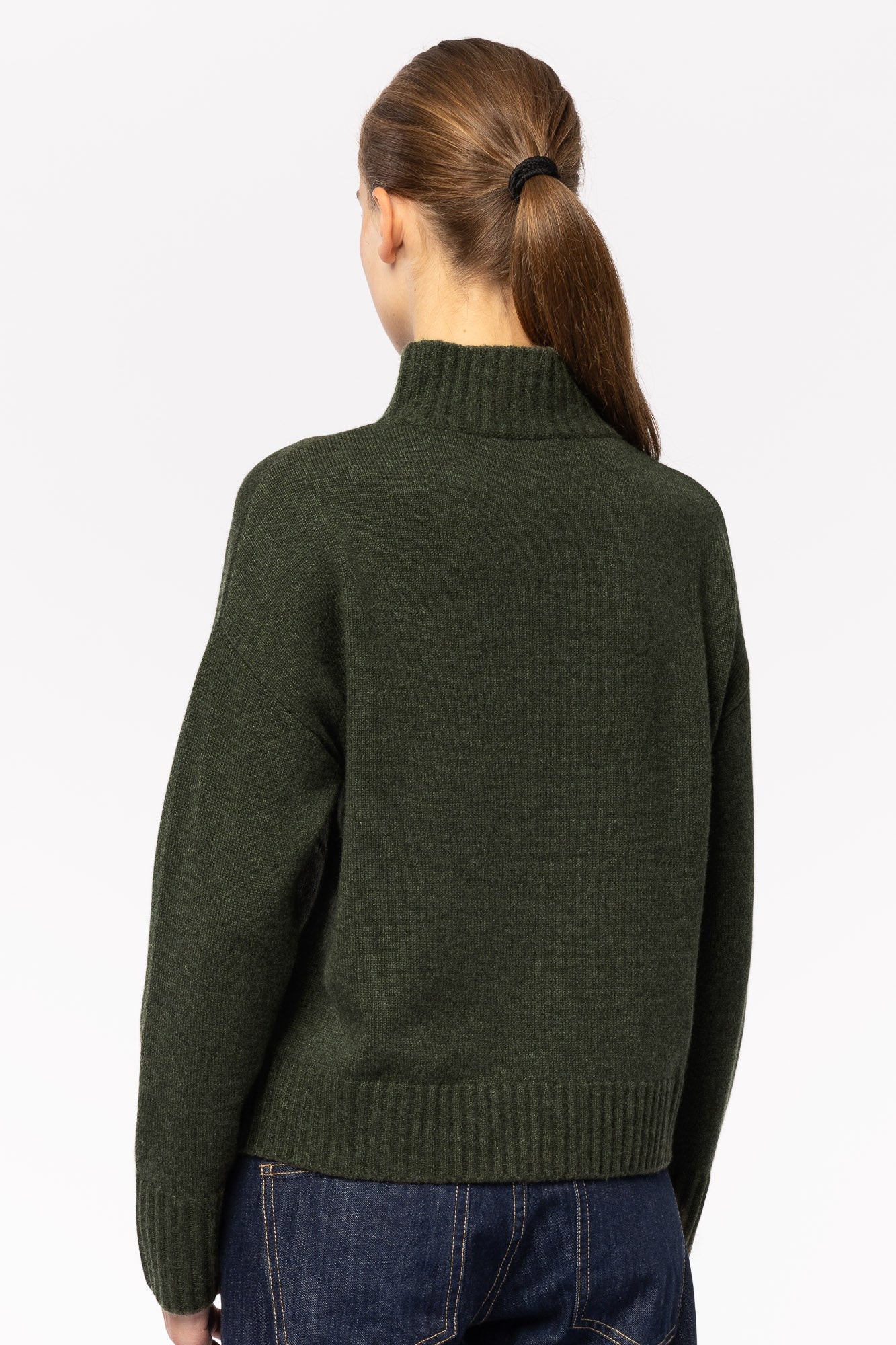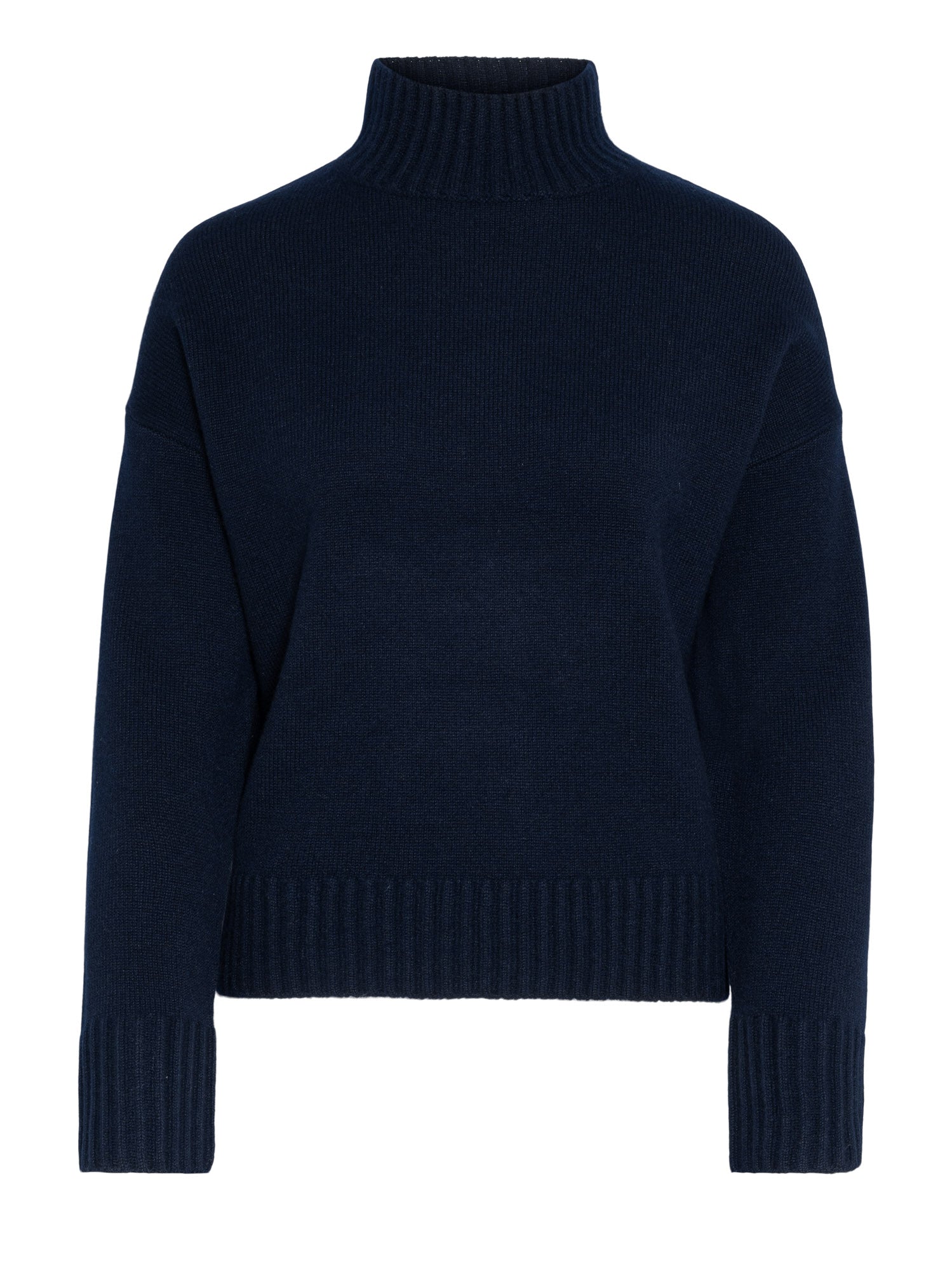 Deep, thick and soft Henderson double cashmere™️ imagined in our iconic, slightly oversized, cozy sweater. Drop-shoulder sleeves give a relaxed look. Delicate double-ribbed mockneck and high, thick ribbing give the wide cuffs and hem a polished finish.