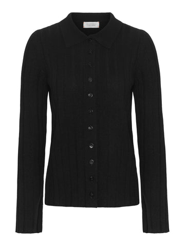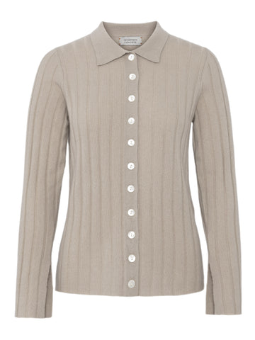 Versatile V-neck cardigan with wide-rib structure and cool slit cuffs. The roomy straight fit falls nicely over the hip.