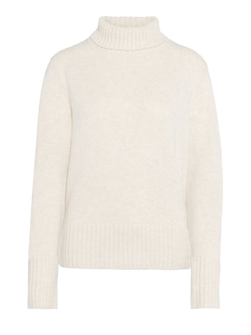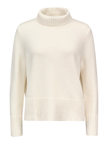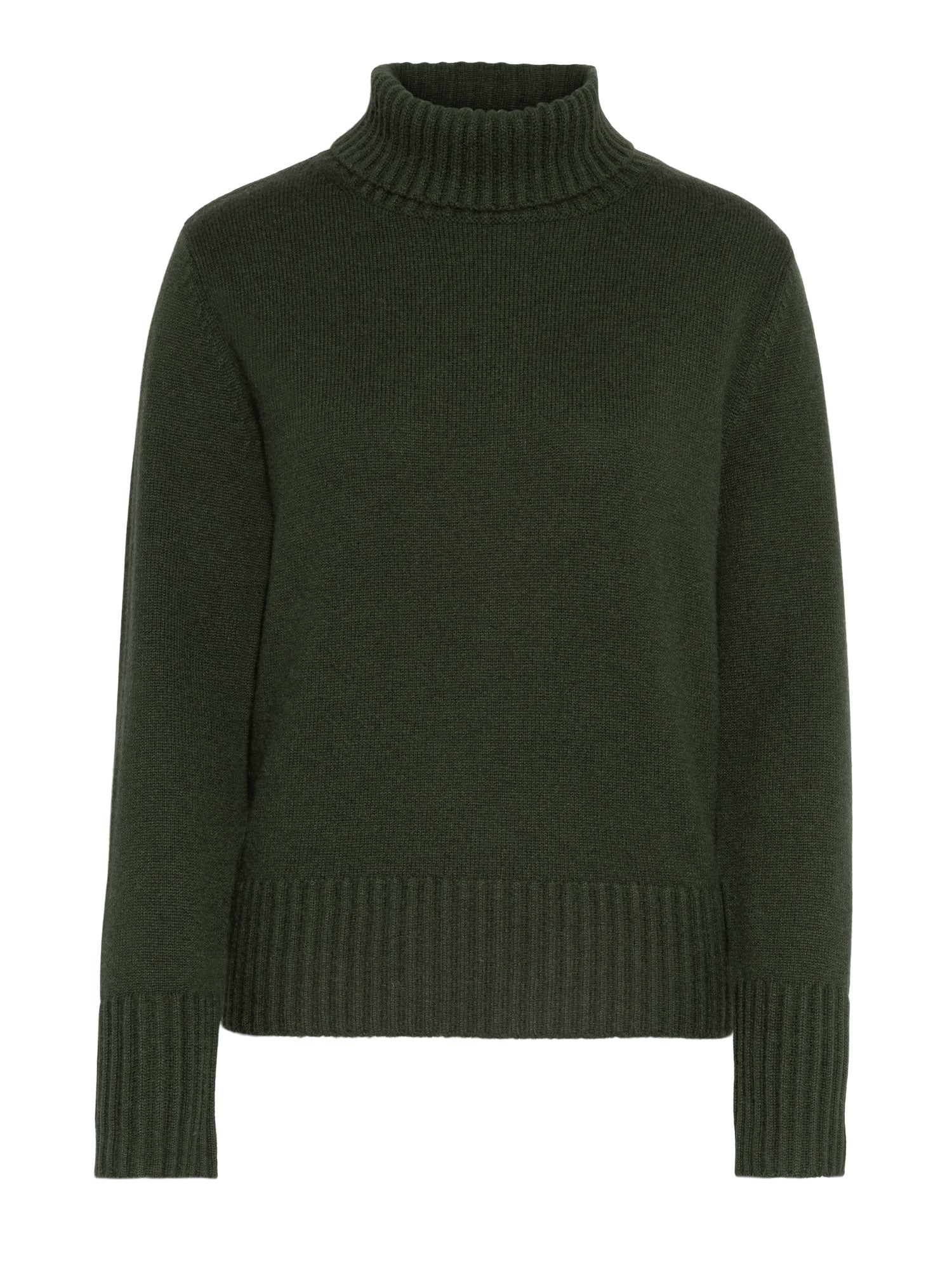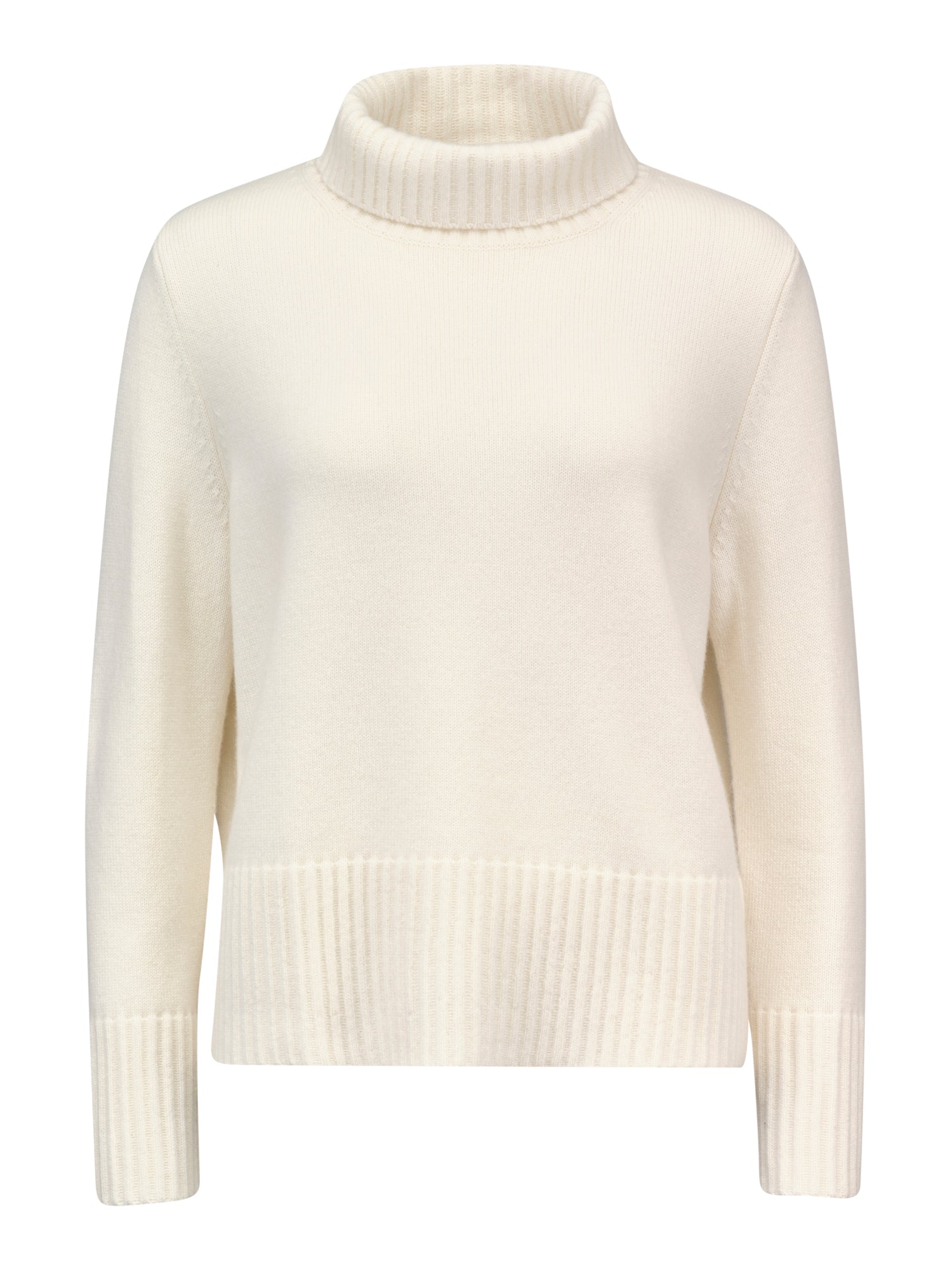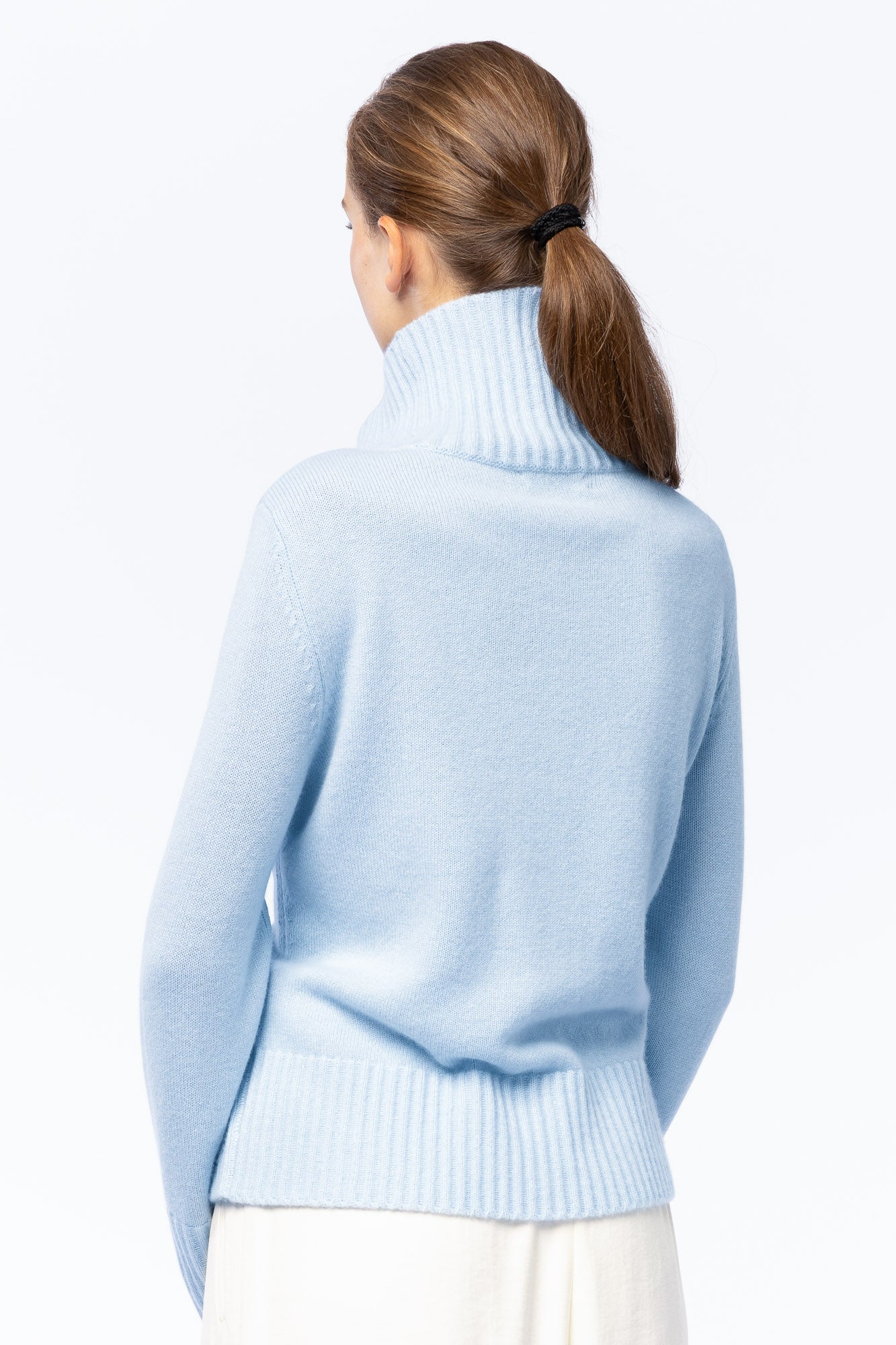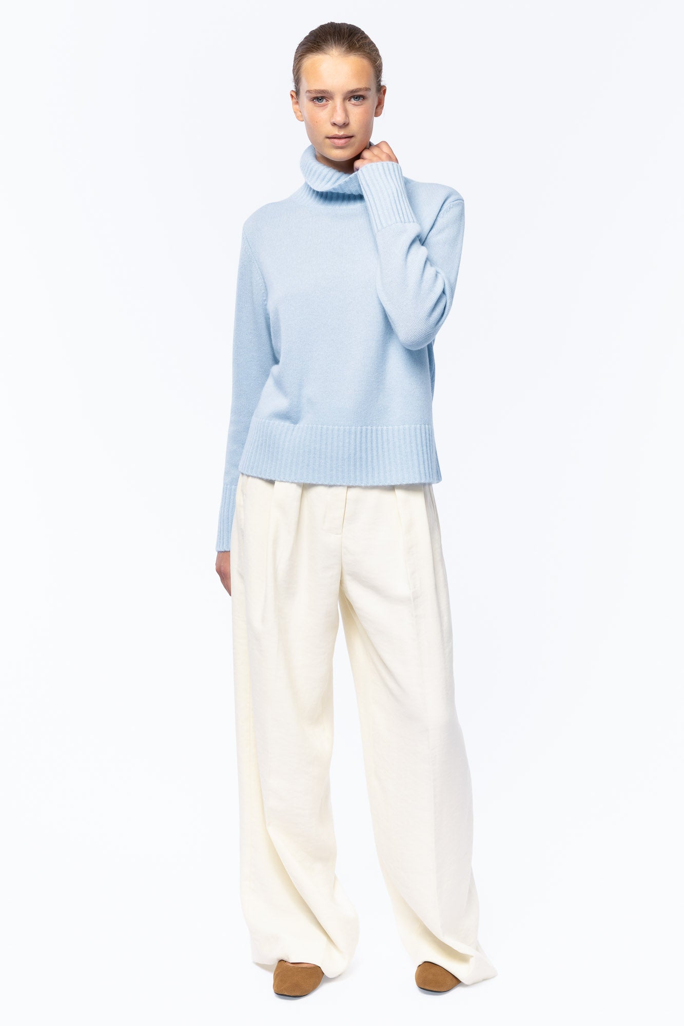 Deep, exquisitely soft Henderson double cashmere™️ with thick, high ribbed neck, cuffs and hem for a rustic yet elegant look. Roomy at the chest, fitted at the waist with high, thick rib. The high neck and cuff ribbing is comfortable and not too tight.