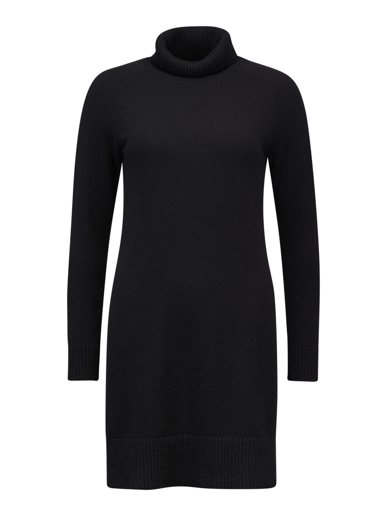 The Sophia dress is a modern take on the classic sweater dress. This comfortable poloneck dress follows your curves and falls perfectly to mid-knee. Pair with your favorite blazer or your tallest boots - this dress goes easily from office to evening. Wide ribbing adorns the high neckline, cuffs and hem for a sophisticated, refined look.