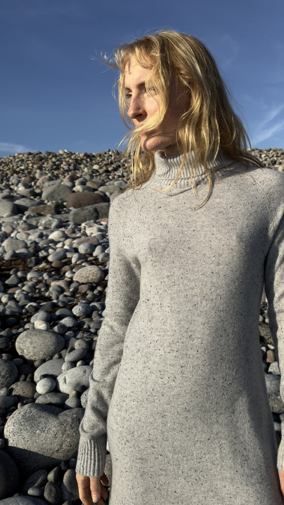 100% finest 'grade A' cashmere in our most popular quality, the light and comfortable Henderson jersey™️. The Sophia dress has a slightly curved fit that follows the curves of the body. Please choose your usual size. Shown here in size 1.