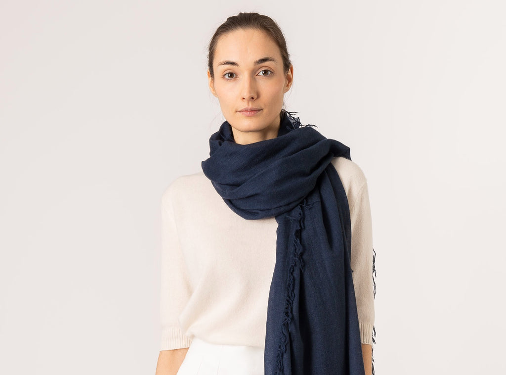 Incredibly light and delicate, our Whisperlight™️ cashmere scarf is woven with thin strands of 100% finest cashmere. The twisted fringes are created through a special process, giving a relaxed yet refined look.