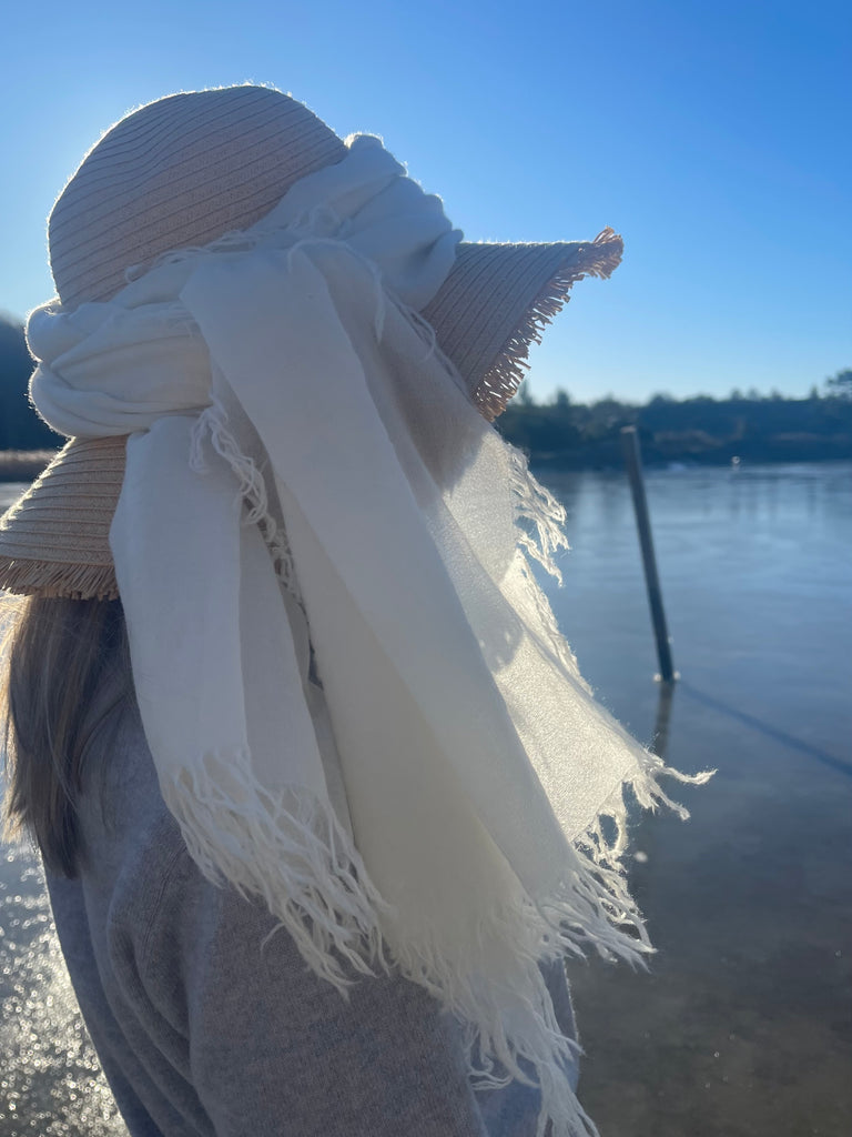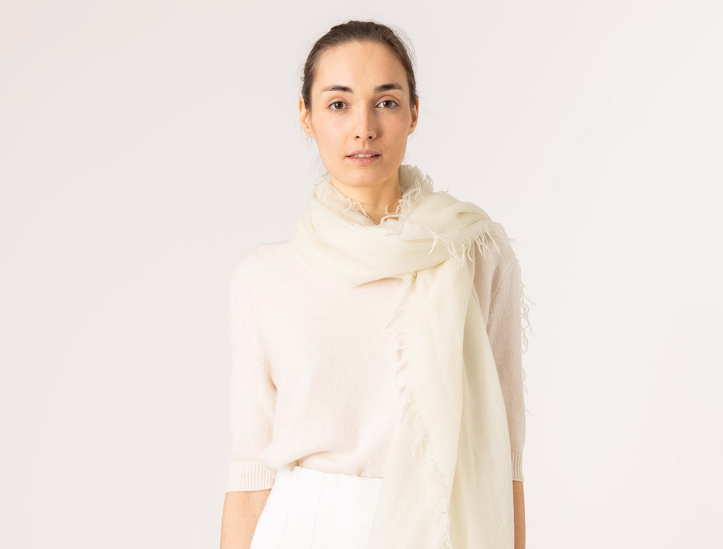 Incredibly light and delicate, our Whisperlight™️ cashmere scarf is woven with thin strands of 100% finest cashmere. The twisted fringes are created through a special process, giving a relaxed yet refined look.