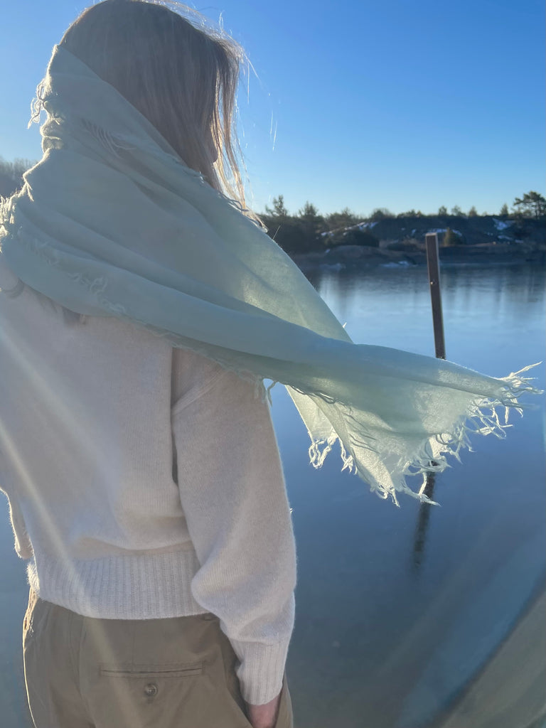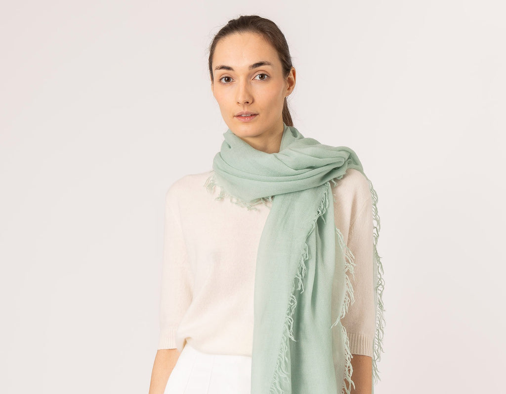 Incredibly light and delicate, our Whisperlight™️ cashmere scarf is woven with thin strands of 100% finest cashmere. The twisted fringes are created through a special process, giving a relaxed yet refined look.
